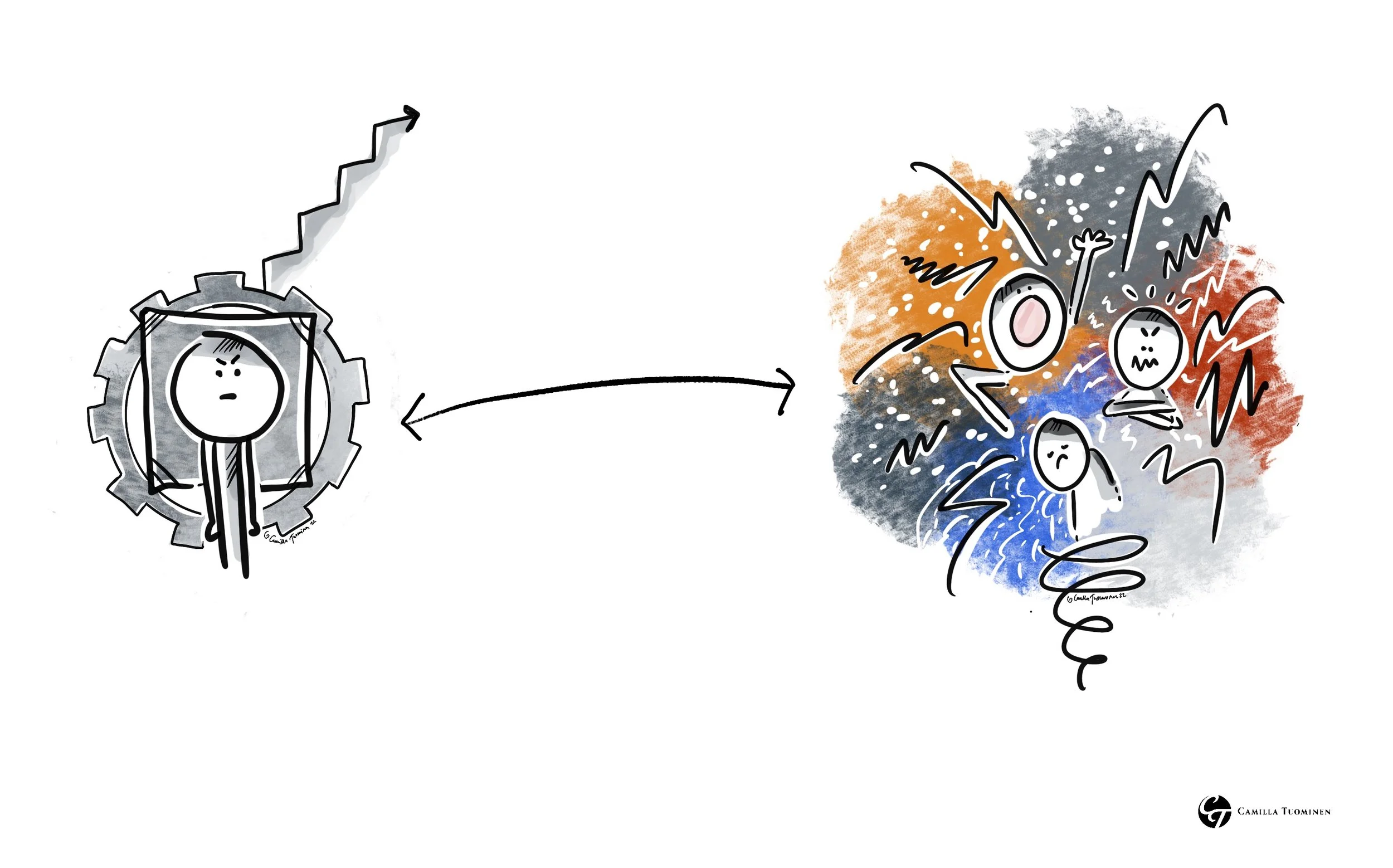 Here, negative emotions are something to avoid altogether. Discomfort is treated as a signal to escape, postpone, numb, overanalyze, or immediately “fix”—rather than face. When going gets tough, we take sick day, as described in this Hesingin Sanomat article recently (5.1.2026):